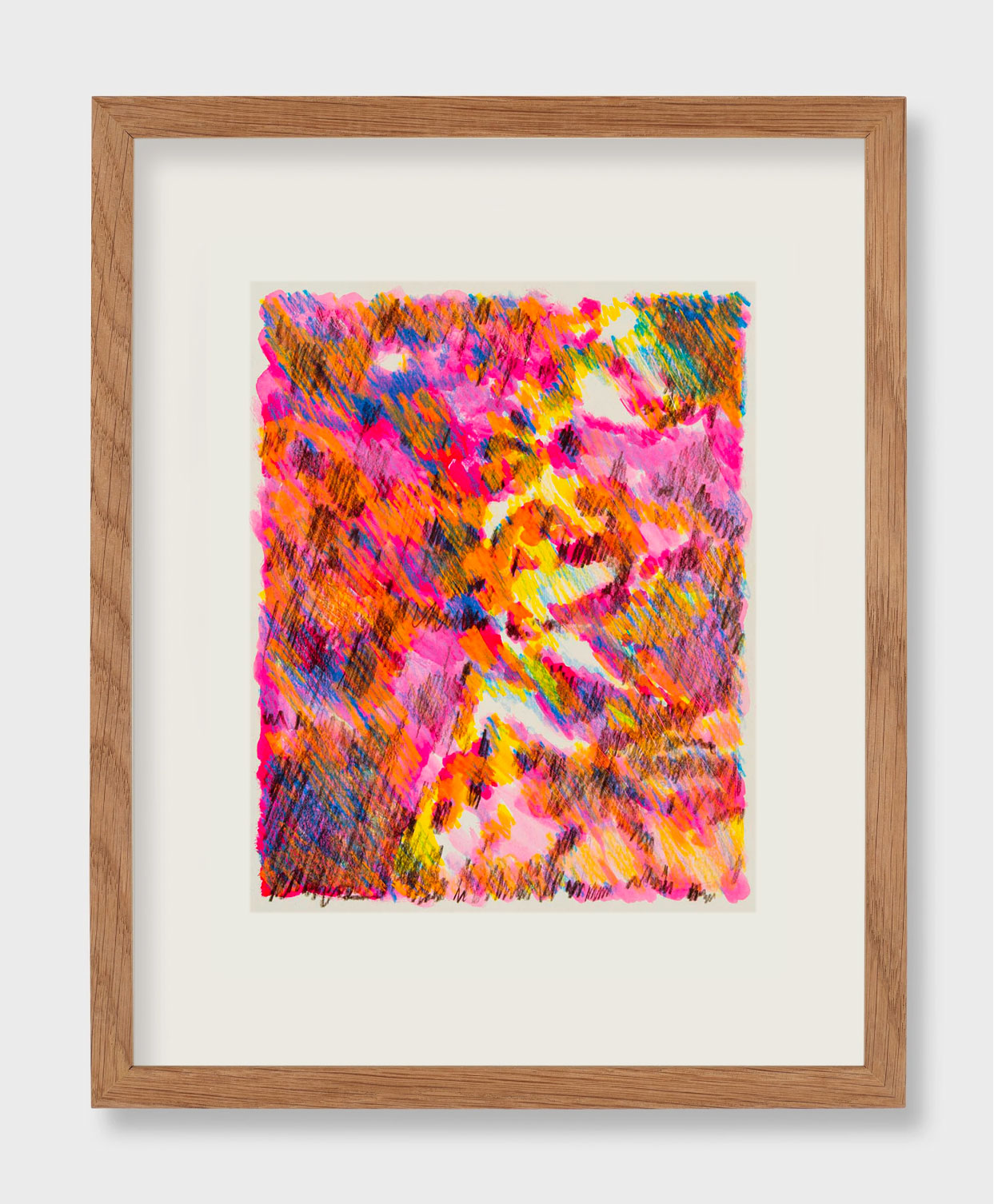 Framed in handmade wooden frame, without glass.