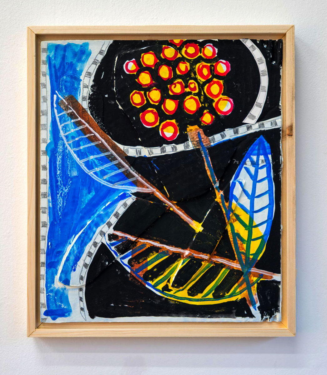 'Flowers from Italy, yellow' Mixed media and collaged card on card. 24 x 28 cm,