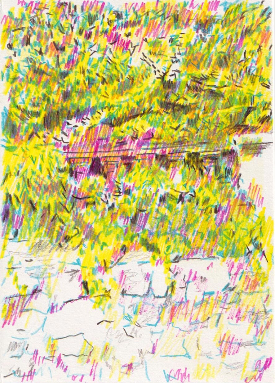 'Wall' drawing, pencil and felttip on 300 grs paper, 14,8 x 21 cm. Signed and dated on the back. Unframed.